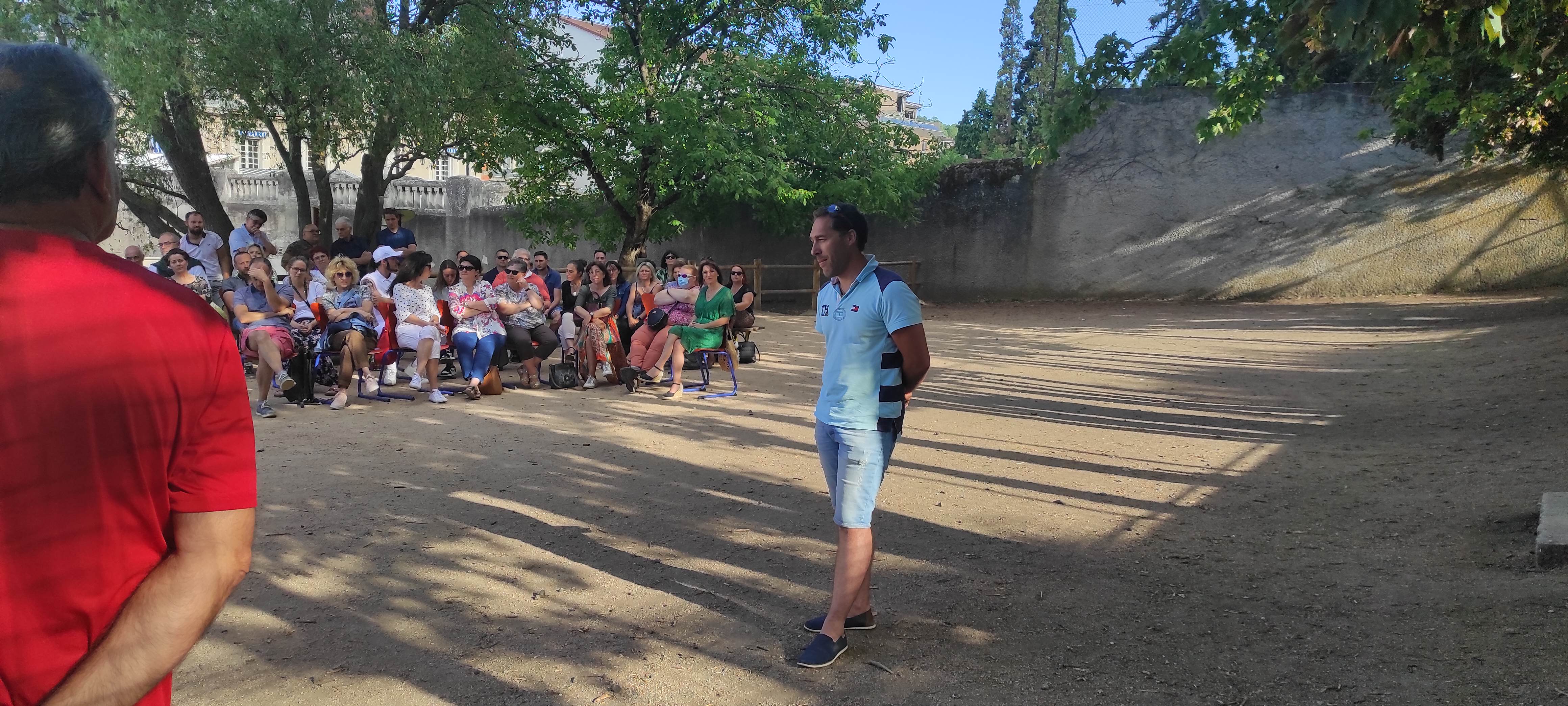 Mardi 5 juillet 2022, c'est dans l'enceinte du collège et de l'école St Louis que l'équipe enseignante du Pôle ainsi que l'équipe éducative, les membres du personnel et de la direction se sont réunis pour le repas de fin d'année traditionnel. Dans une ambiance chaleureuse et par un temps estival, M. Giraud, chef d'établissement, a accueilli les participants par un mot de bienvenue, retraçant l'année écoulée toujours marquée par la crise sanitaire mais offrant à de nombreuses classes l'occasion de renouer avec les voyages scolaires ! Puis la parole fut donnée aux 7 enseignants qui ont fait valoir leur droit à la retraite : Marc Sabatier, professeur de Comptabilité-Gestion dans l'enseignement supérieur, Mireille Juigné, responsable de la SEGPA et professeur de bio-technologie, Alexandre Aurelle, professeur des écoles spécialisé au sein de la SEGPA, Alain Cognasse, professeur d'informatique dans l'enseignement supérieur, Maryline Serre, professeur de technologie aux collèges St Louis et La Chartreuse, Denis Pastural, professeur des sciences industrielles de l'ingénieur au lycée La Chartreuse, ainsi que Danielle Assezat, professeur de Physique-Chimie au collège St Louis. Nous les remercions vivement de leur implication, leur disponibilité et leur énergie mises au service de nos élèves ! Bon vent et bon repos mérité !